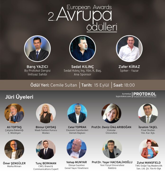 15 Eylül 2021 tarihinde yapılacak 2. Avrupa Ödül töreni, protokol üyeleri ve çok sayıda akademisyeni bir araya getirecek. Zafer Kiraz’ın sunumuyla gerçekleşecek 2’nci Avrupa Ödül töreni, İstanbul Cemile Sultan Korusu alanında düzenlenecek.