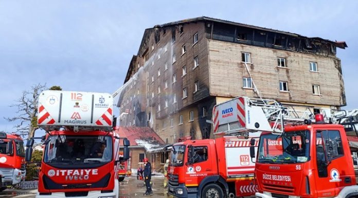 Kültür ve Turizm Bakanı Mehmet Nuri Ersoy, Bolu Kartalkaya'da Grand Kartal Otel'de meydana gelen ve 66 kişinin hayatını kaybettiği yangına ilişkin olarak yaptığı açıklamada, otelin denetimlerinin 2021 ve 2024 yıllarında yapıldığını belirterek, "Otelin itfaiye tarafından verilmiş yangın yeterlilik belgesi mevcut. Zaten...