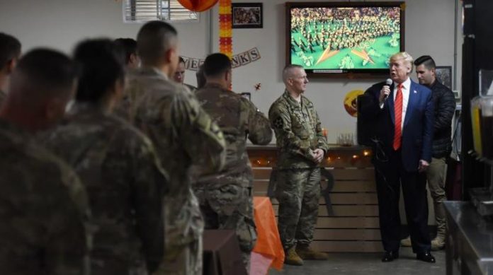 Trump, Amerikalı askerlerle gerçekleştirdiği Şükran Günü yemeğinde ise, “Şükran Günü’nde buradan başka olmak istediğim bir yer yok” dedi. ABD’nin dahil olduğu ‘süresiz’ savaşları bitirmek istediğini uzun zamandır vurgulayan Trump, aynı zamanda Afganistan’la olan savaşın cephede değil siyasi bir şekilde çözüme ulaştırılabileceğini de ifade etti.